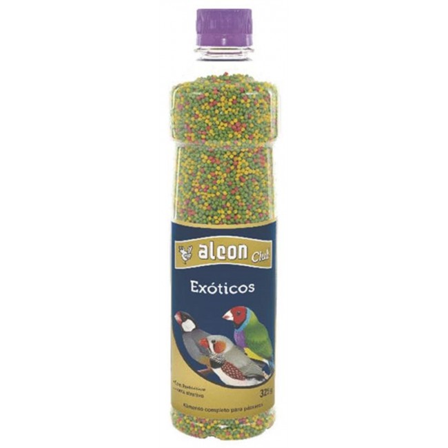 Alcon Club Exóticos é um alimento extrusado completo para pássaros como Diamante de Gould, Mandarin, Manon e Calafate, entre outros. Contém Prebiótico que promove o crescimento seletivo de bactérias benéficas presentes nos intestinos, melhorando o aproveitamento dos nutrientes. Elaborado com ingredientes selecionados, vitaminas e minerais de alta qualidade, apresenta formato e aroma atrativos que ajudam na aceitação e na distração. Facilita muito o manejo, pois não há necessidade da rotina diária de limpeza dos comedouros, como ocorre com as sementes. Sendo assim, o alimento pode ser fornecido para vários dias.