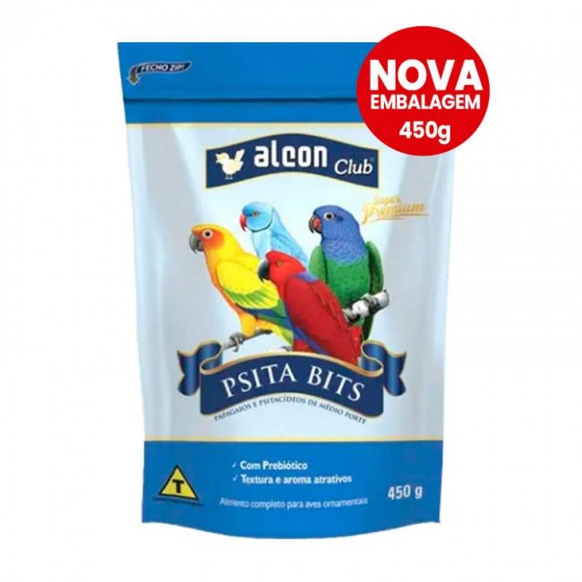 Alcon Club Psita Bits - Papagaios e Psitacídeos de Médio Porte é um alimento extrusado completo para Psitacídeos de médio porte como Jandaias, Maitacas, Ring Necks e Eclectus. Contém Prebiótico que promove o crescimento seletivo de bactérias benéficas presentes nos intestinos, melhorando o aproveitamento dos nutrientes. A baixa concentração de ferro, importante para estas aves, evita riscos ao bom funcionamento do fígado.