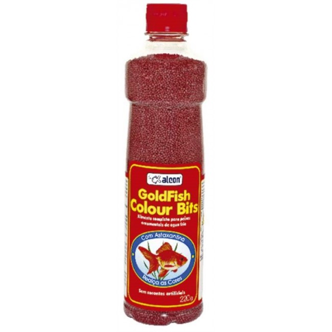 Alcon Goldfish Colour Bits é um alimento extrusado completo, muito atrativo e que realça as cores e o brilho de peixes de água fria, em especial Goldfishes (Kinguios) e Kois (Carpas). A qualidade e variedade dos ingredientes, aliados ao criterioso processo de extrusão, conferem excelente digestibilidade ao alimento, proporcionando beleza e desenvolvimento.