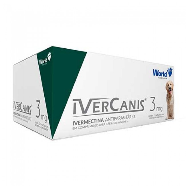 IverCanis 3mg Linha antiparasitária em COMPRIMIDOS PALATÁVEIS à base de Ivermectina. De eficácia comprovada, é utilizada contra diversos tipos de ectoparasitas e endoparasitas. Apresenta estudos de eficácia e segurança para o tratamento de sarna sarcóptica provocada por Sarcoptes scabiei. 1 comprimido para 15kg de peso do animal. Para maiores informações à respeito da utilização e dosagem do produto, lei a bula ou procure um Médico Veterinário. As prescrições e dosagens poderão ser alteradas de acordo com a orientação do Médico Veterinário COMPRIMIDOS DE 3 mg Animais de 7,5 kg | Meio comprimido Animais de 15 kg | 1 comprimido Animais de 22,5 kg | 1 e meio comprimido
